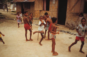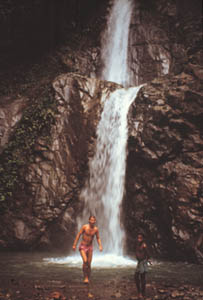Efter bad kan man gå genom byarna och upp emot djungeln.