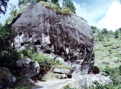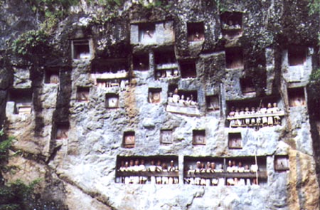 Många begravningsplatser uppe i Torajaområdet är i grottor i berg.