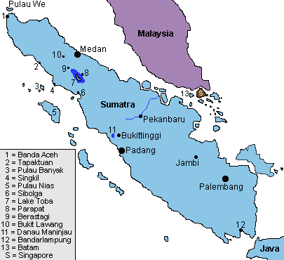 För att läsa mer på Indonesia Tourism, om de olika områdena av Sumatra: