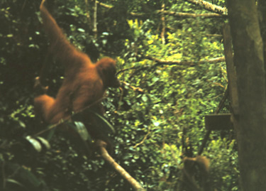 Det är ganska mäktigt att stå vid matningsplattformen och se orang utangerna komma svingande längs trädkronorna.