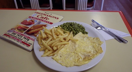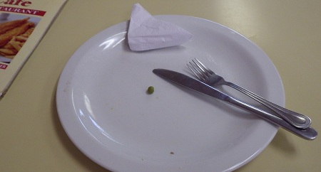 Omelett, french fries och ärtor helt enkelt och som synes på nästa bild renskrapade jag tallriken tills jag blev proppmätt och inte fick ned något mer…