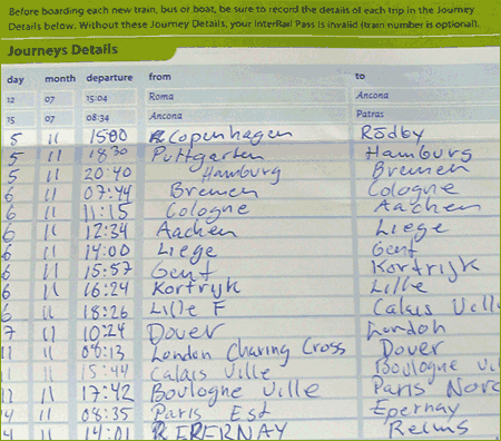 I ditt tågluffarkort skall du i ett protokoll skriva (lista) alla tågresor du gör. Det är sällan någon konduktör kollar detta, men rent tekniskt kan de ge böter om det inte är ifyllt.
