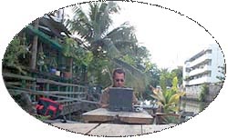 På bilden sitter jag på Gipsy Guest House i Bangkok och skriver om staden.