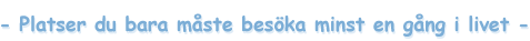 Vill du skicka in din egen topplista över de fem platser/länder som du anser alla borde besöka minst en gång i livet. Skicka in din topplista här...