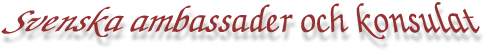 Nedan finns länkar till de olika Svenska ambassader och konsulat som har en egen hemsida. Längre ned finns även en länk till UD´s sida, där det finns adresser till alla Svenska ambassader som finns i världen.